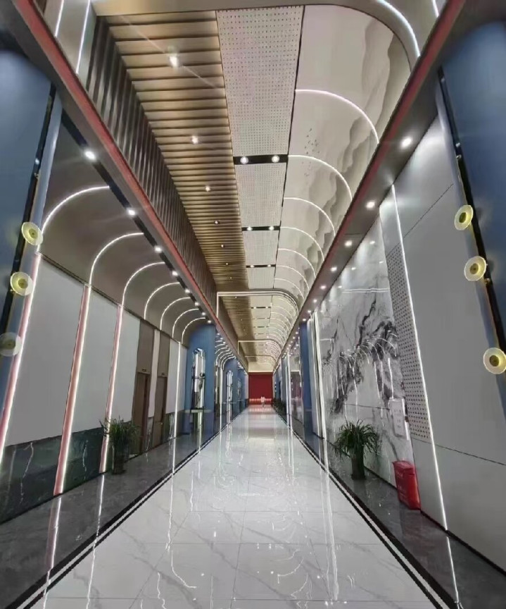 在性能上,碳晶板兼具抗菌防潮、防水防火、耐刮耐用等属性。毛坯墙可直接安装,无需打蜡、特殊护理,日常清水擦拭即可,大大减少了日常护理的繁琐。而且,它不易变形、受潮、留划痕,使用寿命长。同时,碳晶板支持异形切割与折弯,适配家装墙面、吊顶、背景墙、护墙板等全场景装饰需求,无论是酒店的多元场景,还是家装的个性化设计,都能轻松应对。
